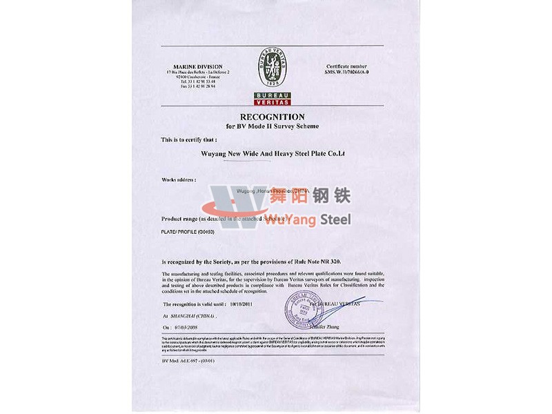 舞陽鋼鐵BV(法國) 船舶船級(jí)社認(rèn)證證書